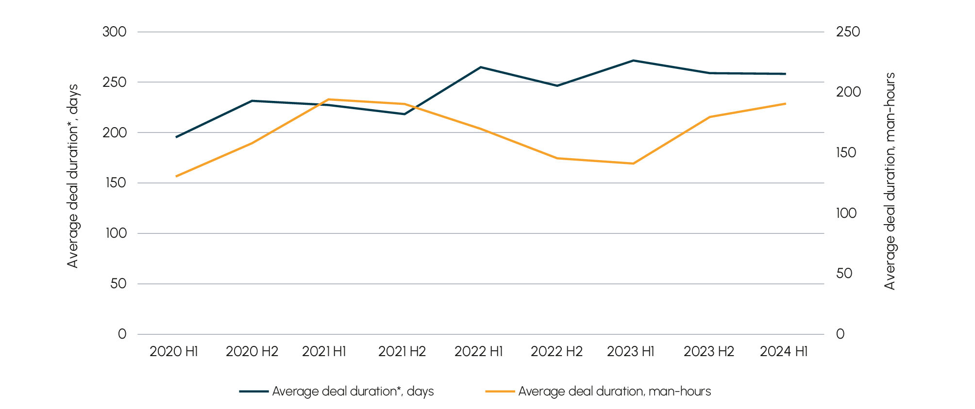 This shift comes at a critical time. Increasing regulatory scrutiny13 and deal complexity14 have stretched due diligence timelines. Between 2022 and 2023, regulators challenged $361 billion worth of transactions15, extending pre-close periods from the traditional three-month horizon to as long as two years. Ideals research16 shows that deals closing in the first half of 2024 had lasted on average 258 days. That’s 32% longer than in 2020, when the average duration was 195 days.