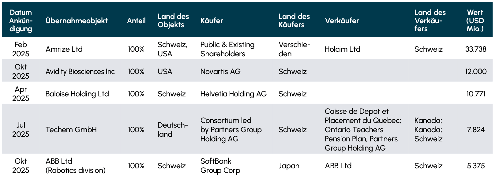 Abb. 2 Top-5-Transaktionen der Schweiz im Jahr 2025
