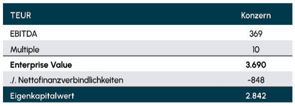 Daraus resultiert im Ergebnis ein Eigenkapitalwert des Konzerns in Höhe von 2.842 TEUR.