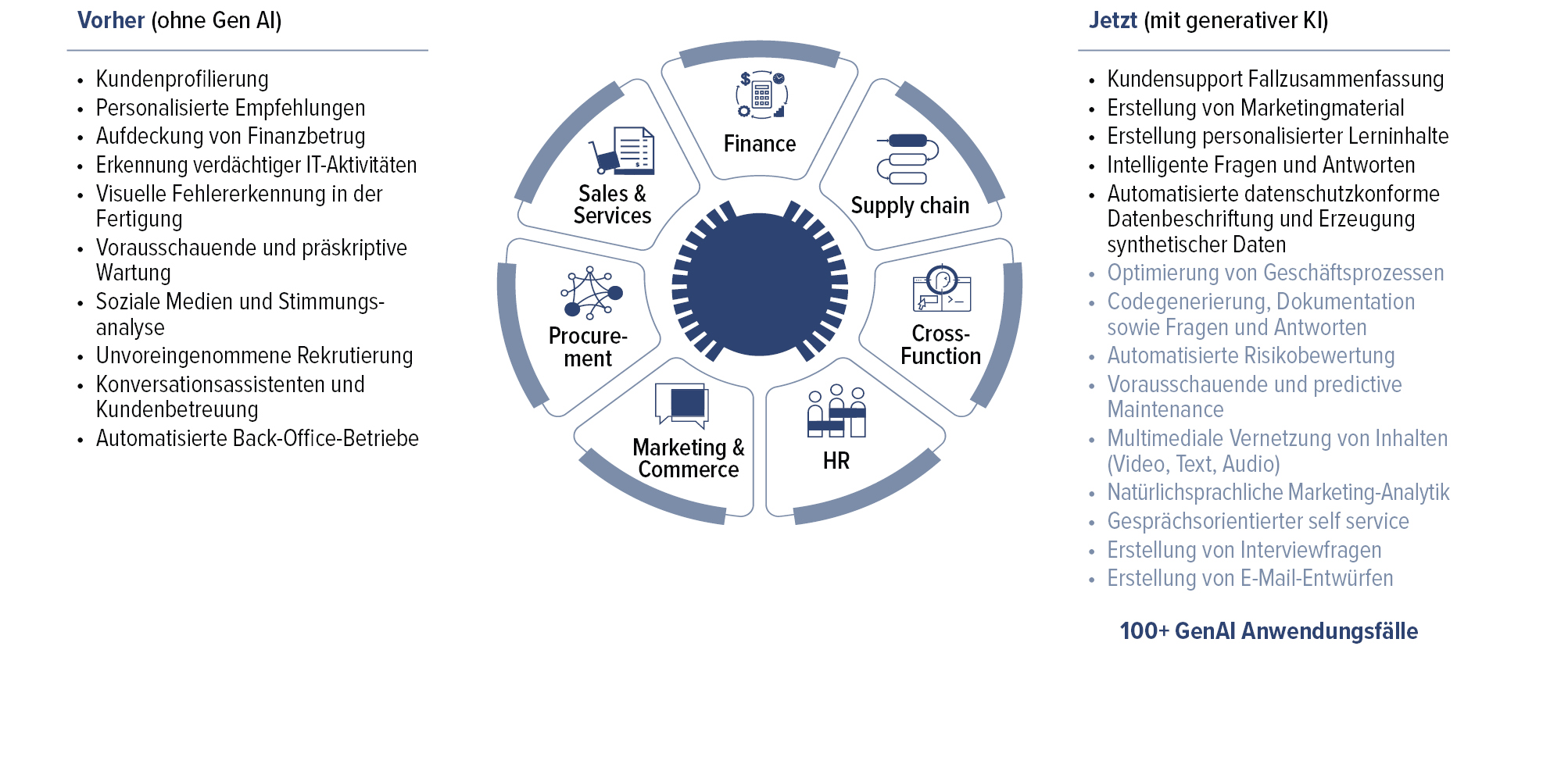 Insgesamt hat die Anwendung der GenKI für alle Entscheidungsaufgaben über alle Branchen, Abteilungen und Hierarchieebenen von Unternehmen hinweg erhebliches Automatisierungs-, Qualitätsverbesserungs- und Disruptionspotenzial und wird in Konsequenz die Arbeitswelt verändern.