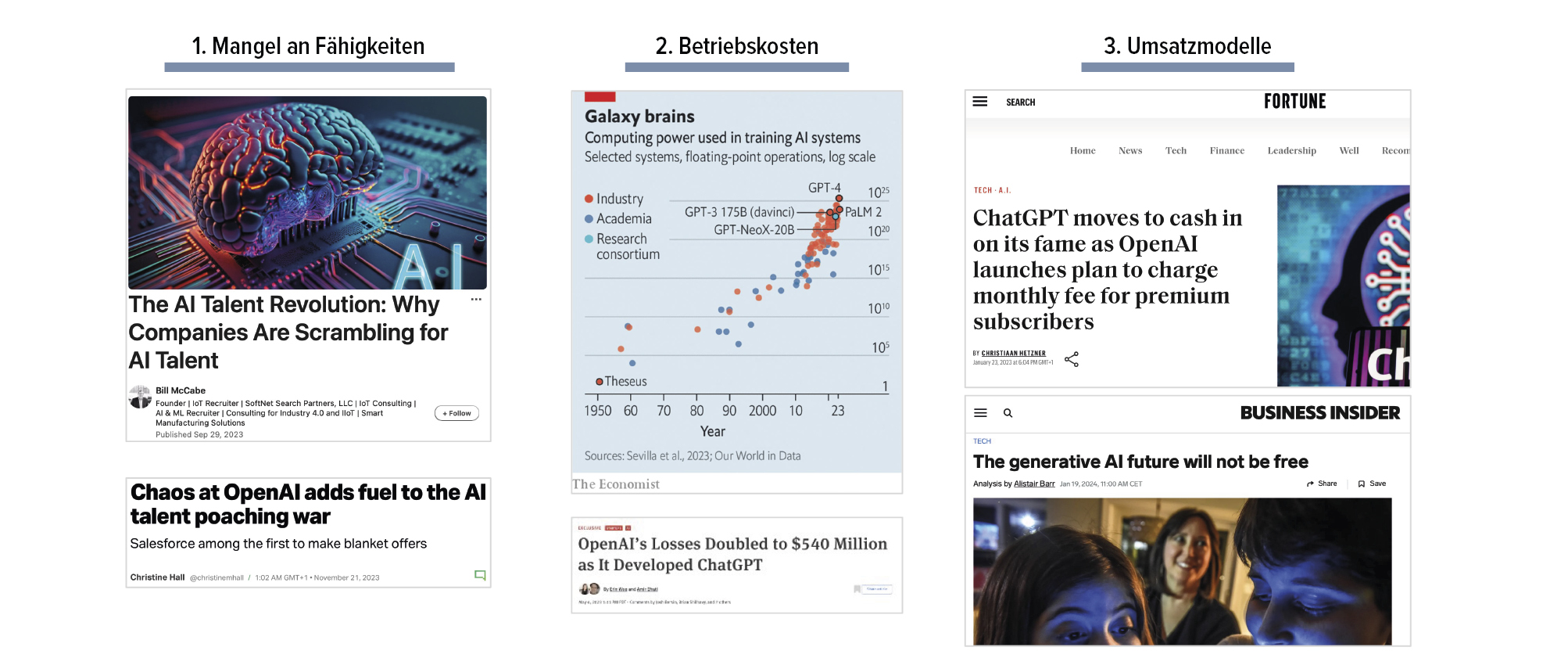 Aber auch Unternehmen, die GenKI-Lösungen anbieten, stehen vor enormen Herausforderungen. Denn auch diese Unternehmen trifft die Knappheit an qualifizierten Arbeitskräften, welche die Gehälter nach oben treibt und das Risiko erhöht, dass täglich Abwerbungen von Mitarbeitern eintreten können.