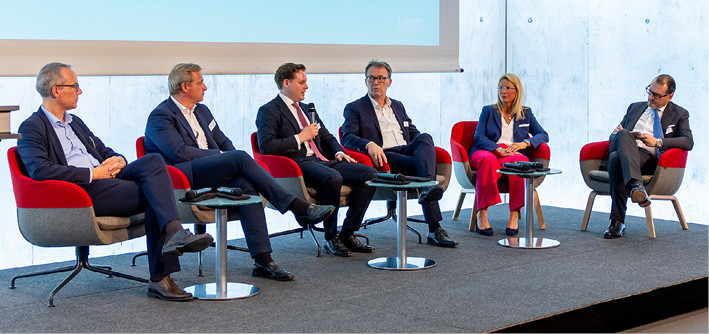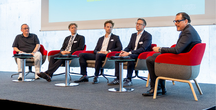 Die erste Paneldiskussion widmete sich der Automatisierung und Digitalisierung. Unter der Moderation von Karl-Christian Bay (BAY GmbH) diskutierten Dr. Kristian Kampfer (madiba), Karl-Heinz Land, Konrad Hintermair (DevelopX) und Dr. Hartmut Ruh (Körber). Thema war die Notwendigkeit des Einsatzes von KI sowie die damit verbundenen Potenziale, um wettbewerbsfähig zu sein. Anhand des Beispiels “madiba” wurde der Einsatz von KI im Rahmen von Ausschreibungsprozessen aufgezeigt und aus den unterschiedlichen Perspektiven der Panelteilnehmer diskutiert. In der Diskussion wurde auch die Bedeutung von erfahrenen Partnern bei der Implementierung von KI in Geschäftsmodelle deutlich.