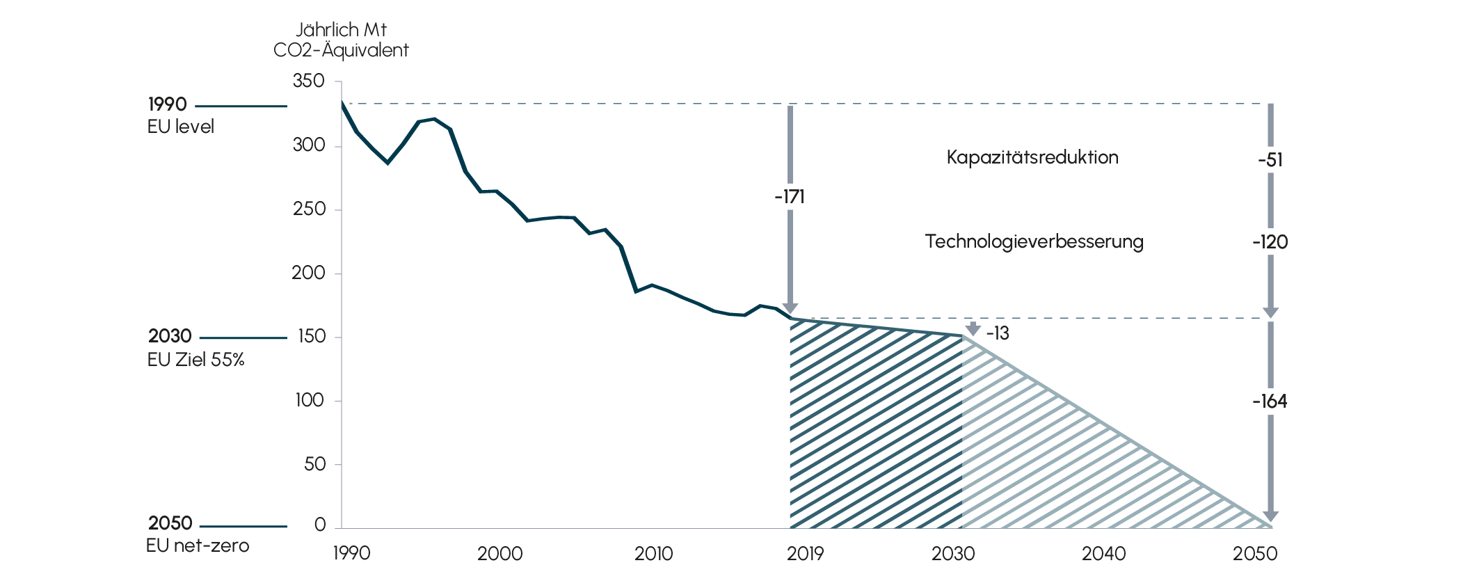 Abb. 6 Verringerung der Treibhausgasemissionen der chemischen Industrie in der EU, 1990–2050