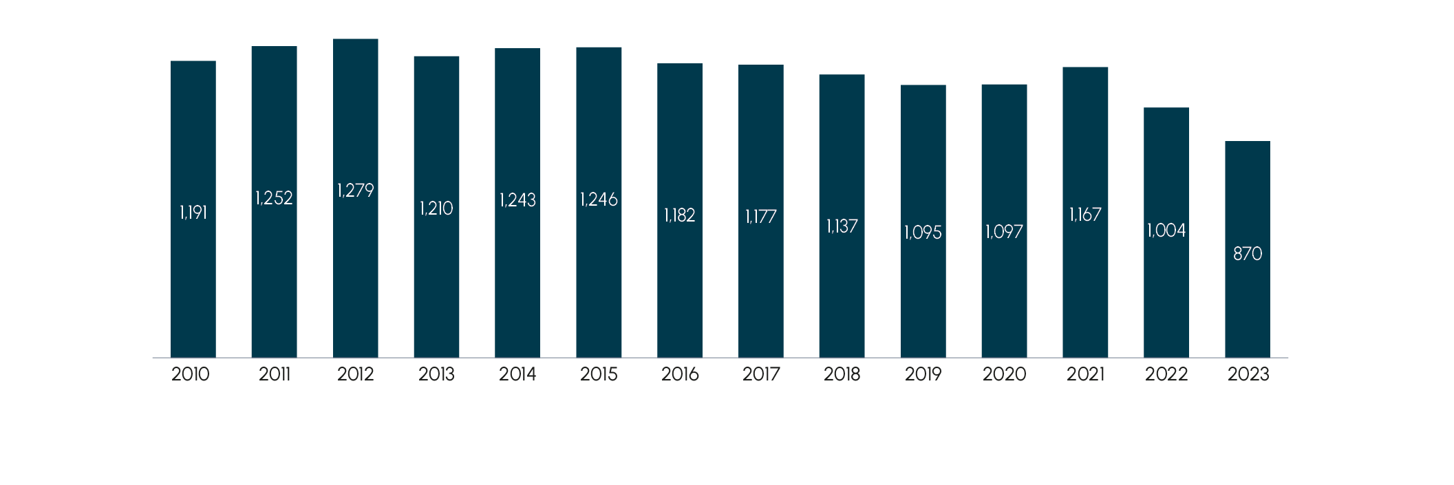 Abb. 3 Energieverbrauch in der Chemieindustrie in Deutschland in den Jahren 2010 bis 2023 (in Petajoule)