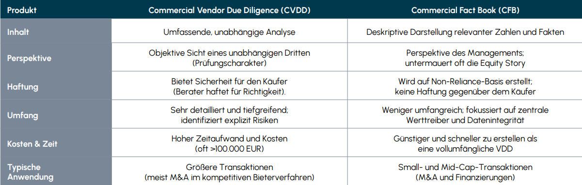Was empfiehlt sich in welcher Situation? Commercial Vendor Due Diligence versus Commercial Fact Book