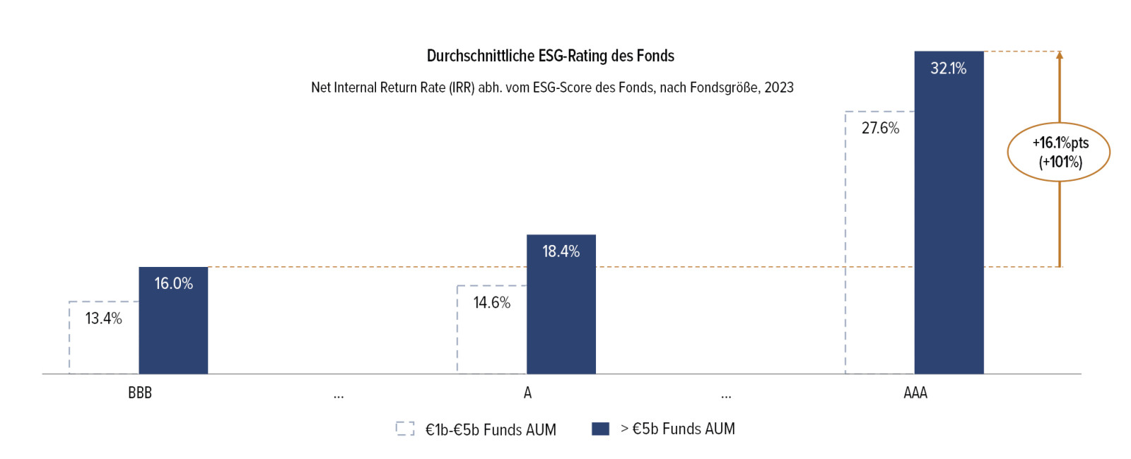 Der große Fokus auf ESG ist nicht nur ein gesellschaftliches Megathema, sondern auch mit harten Zahlen belegbar. Eine kürzlich von EY-Parthenon veröffentlichte Studie zeigt, dass Portfoliofirmen, die exzellent zum Thema ESG aufgestellt sind, bis zu acht Prozentpunkte höhere IRRs realisieren können, wovon aktuell noch primär die Large-Cap-PE-Eigentümer profitieren. Die erfolgreichsten Small- und MidCap-Häuser ziehen jedoch nach: Sie integrieren nicht nur ESG-Kriterien in die Investmentstrategie, sondern etablieren hausinterne ESG-Kompetenz, die Risiken erkennt und mitigiert, aber vor allem auch Potenziale erkennt und hebt.