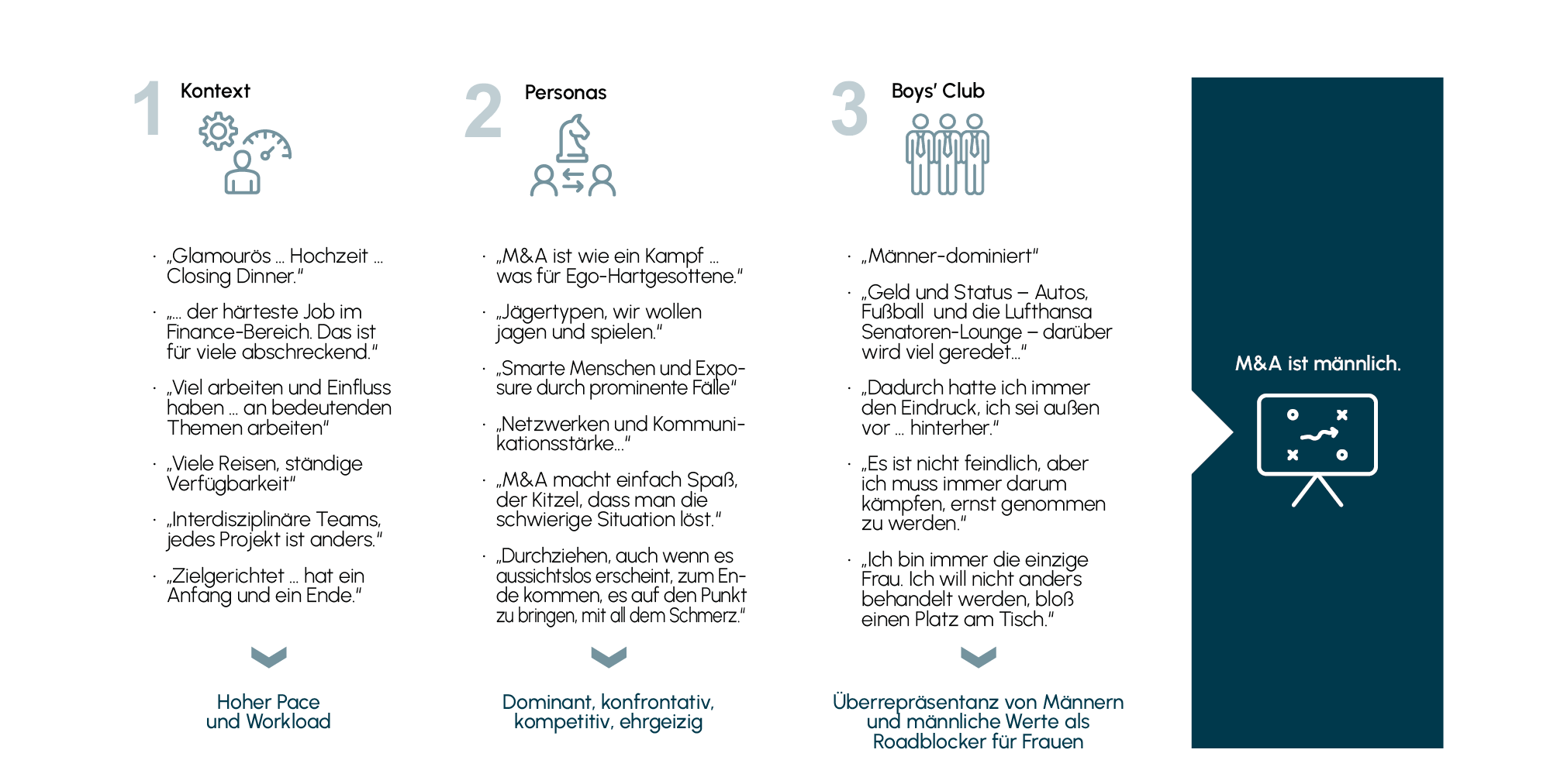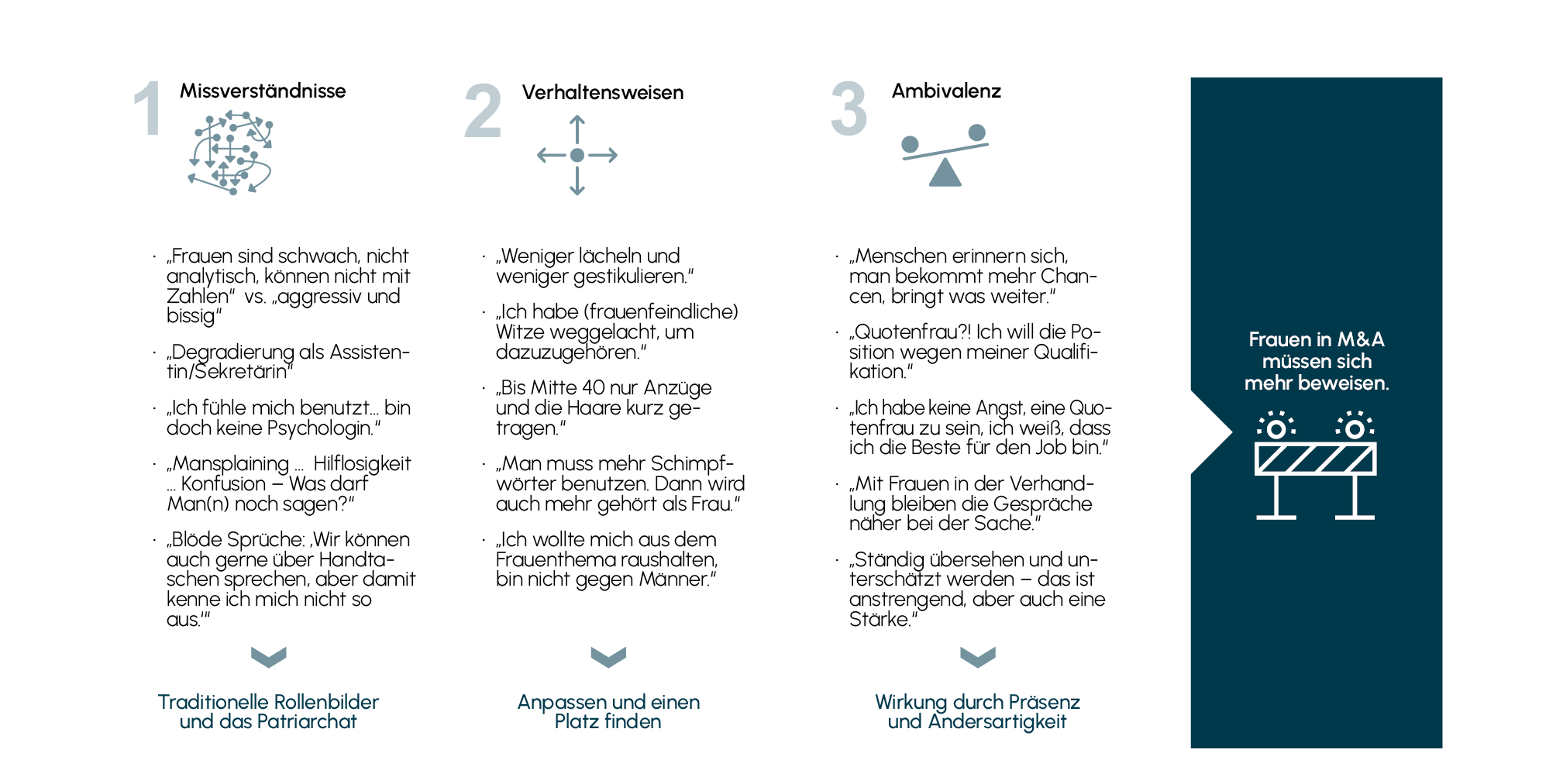 Abb. 3 Interviewausschnitte zu den Herausforderungen für Frauen in M&A