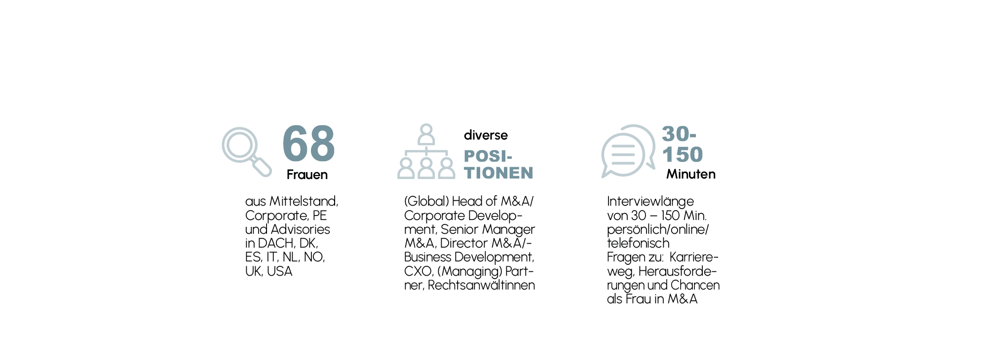Dies war Grund genug für mich, Frauen aus der M&A-Branche zu interviewen. In einem Jahr haben meine Kollegin Christina Koller und ich mit 68 Frauen in Führungspositionen gesprochen. Sie teilten ihre Herausforderungen, Chancen und Bewältigungsstrategien in einem männerdominierten Arbeitsumfeld mit uns. Ihr Erfolg macht Mut, wirft aber auch Fragen auf: Was bedeutet dies nun? Wie können wir alle in der Branche eine chancengerechte Arbeitswelt aktiv mitgestalten? Wie können wir über eigene Denkmuster reflektieren beziehungsweise diese neu denken? Die M&A-Branche ist ein Hochleistungsumfeld, das sehr homogen ist und in dem mehr Talente mit diversen Kompetenzen und Hintergründen gefördert werden sollten. Ein Umdenken lohnt sich – für Unternehmen, Teams und die Zukunft unserer Arbeitswelt. Heute beginnen wir mit der Perspektive der Frauen als einem wichtigen Teil dieser Vielfalt. Dieser Text arbeitet aus den individuellen Erfahrungen unserer Gesprächspartnerinnen inspirierende und wegweisende Perspektiven heraus und lädt zu einer Horizonterweiterung ein.